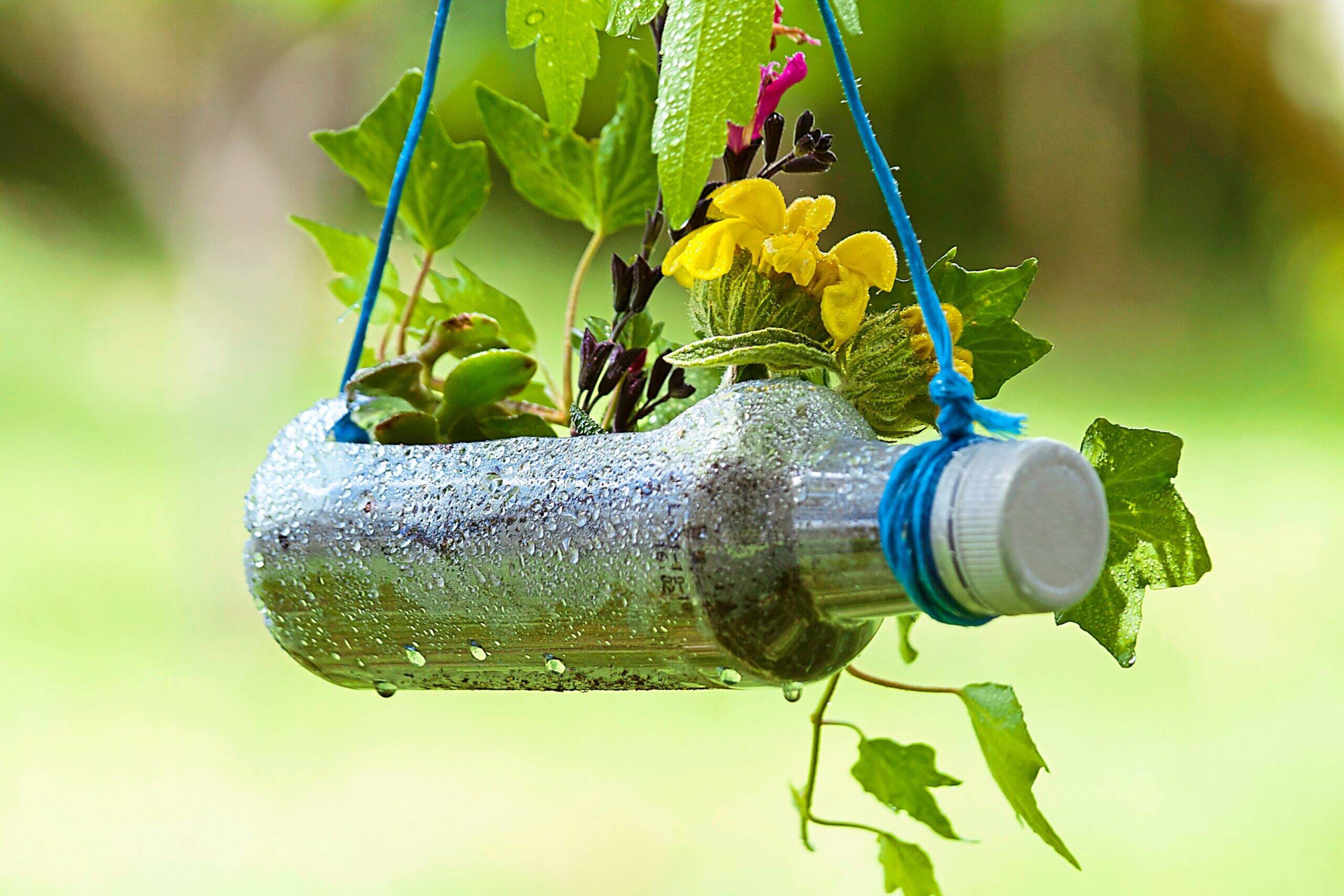 Carefully cut sections from the bottle and hang them outside along with beads and metal pieces to create a musical, artistic piece of art.